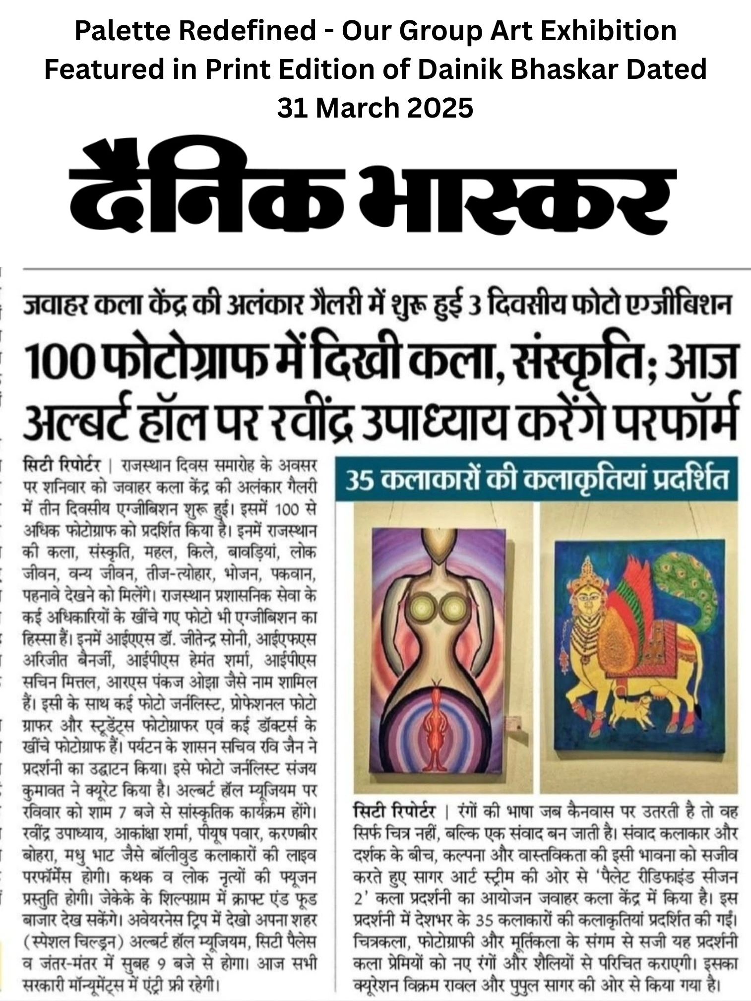 The exhibition saw an incredible lineup of artists and photographers from across India. From Haryana, participants included Dr. Garima Shivhare (Ambala), Leslie Ferrer Fotedar (Faridabad), and Manisha Gupta (Gurugram). Karnataka was represented by Prof. Aparna Uma Raman and Dr. Bharath S. Rajpal from Bangalore. The capital, Delhi, featured Pratibha Pushkarna, Ambika Yadav, Amita Singhal, Anjana Prakash, and Amita Singh. Tamil Nadu brought in Mary Tina Shamli Pillay from Chennai. Rajasthan had strong participation from Shivani Joshi, Mugdha Khandelwal, Varsha Taneja, Shrishti, Nidhi Sharma, Maya Kaushal, Yojan Kumawat, and Shubham Gupta, all from Jaipur. From West Bengal, the exhibition showcased works by Sweta Agarwal, Renuka Murmu, Kalyan Kar, Suvankar Baral, Chaitali Mondal, Lovely Chanda, and Aditya Aryan, primarily from Kolkata. Representing Maharashtra was Harshada Salgaonkar (Mumbai), while Bihar had Ashish Patel (Patna), and Madhya Pradesh had Adarsh Dubey (Indore). Gujarat featured Mritunjay Sinha Jhala (Surat), Uttar Pradesh was represented by Pratima Bisen (Noida), and from Kerala, both Dr. Sunanda Sudhakarana and Sibi Sudarshan participated. Andhra Pradesh contributed H. A. Haripriya (Hyderabad), and Pupul Sagar represented Haryana NCR (Gurugram). The show was further enriched by the presence of invited artists Sneh Bhasin and Romendra Sagar, both from New Delhi.