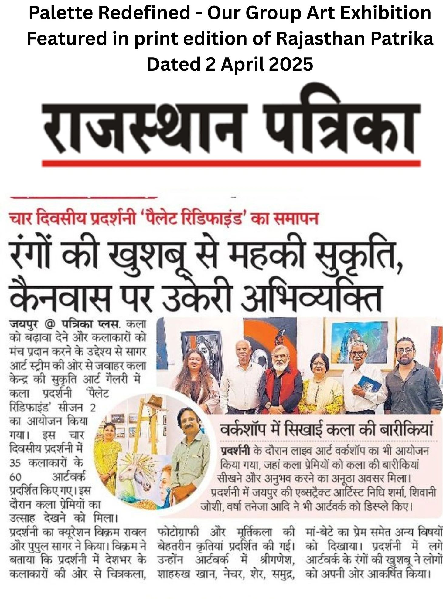 Palette Redefined – Season 2 by Sagar's Art Stream was a grand celebration of Indian art, held at the Sukriti Art Gallery in Jawahar Kala Kendra, Jaipur, from April 5 to 8, 2024. The exhibition brought together a wide array of artworks from both emerging and established artists, showcasing a rich blend of traditional and contemporary styles. The event was inaugurated by prominent guests, including Romendra Sagar, Pupul Sagar Pushkarna, and Vikram Rawal, who are dedicated to promoting Indian art globally. The exhibition highlighted the diversity of Indian art with captivating paintings, mixed media, and installations, offering both art lovers and collectors an opportunity to engage deeply with the evolving art scene. Palette Redefined – Season 2 reinforced Sagar’s Art Stream’s commitment to creating meaningful connections between artists and a global audience, fostering a deeper appreciation for the vast artistic talent India has to offer.